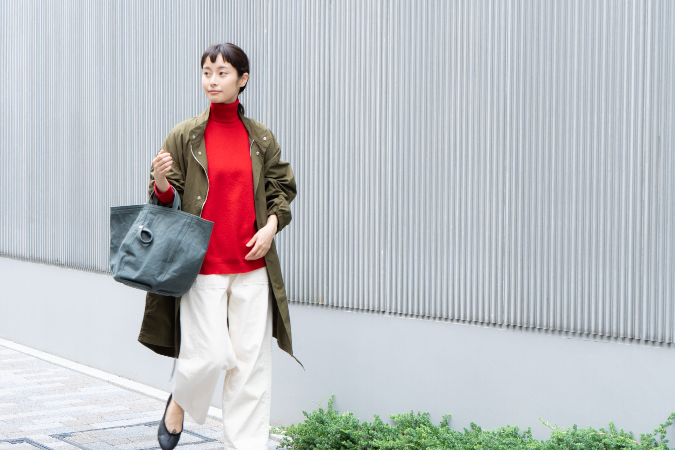 度詰めのハリ感のある生地は、伸びは少ないですが型崩れしにくく長く愛用いただける一品です。