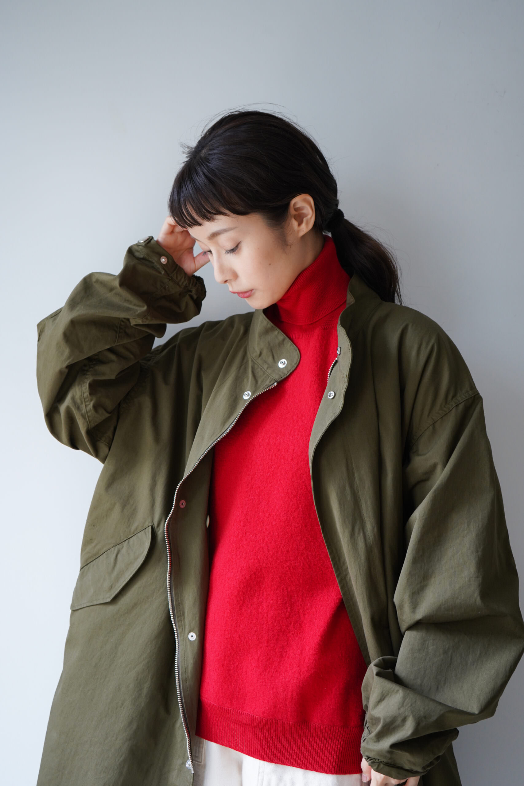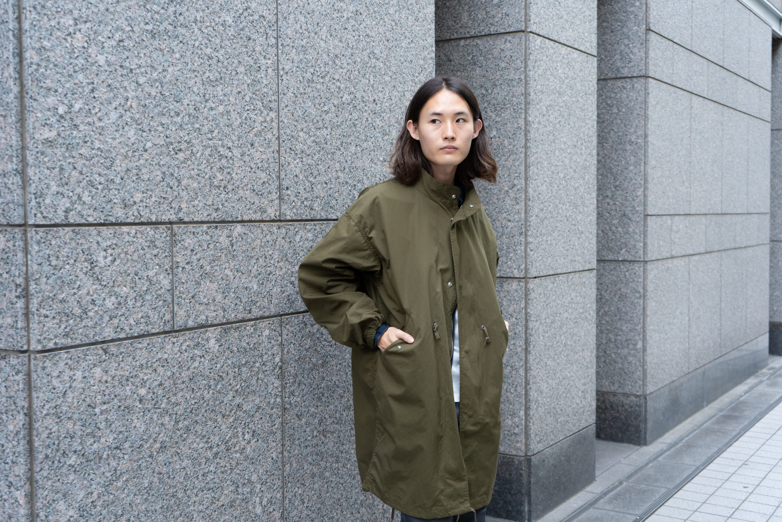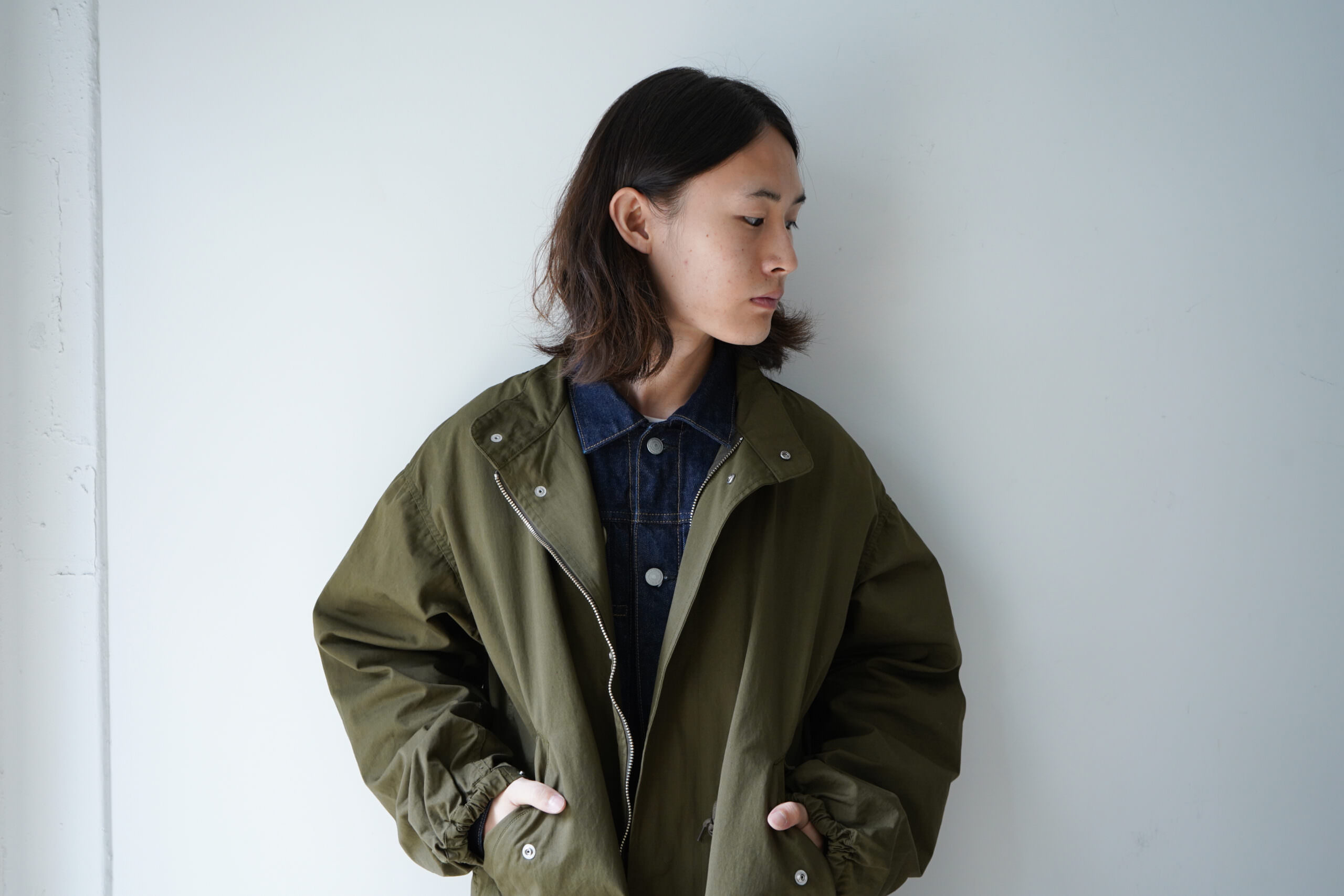 フロント両サイドにある大きなポケットも特徴的ですが、フワッと空気を含むような柔らかいオーバーなシルエットも特徴。