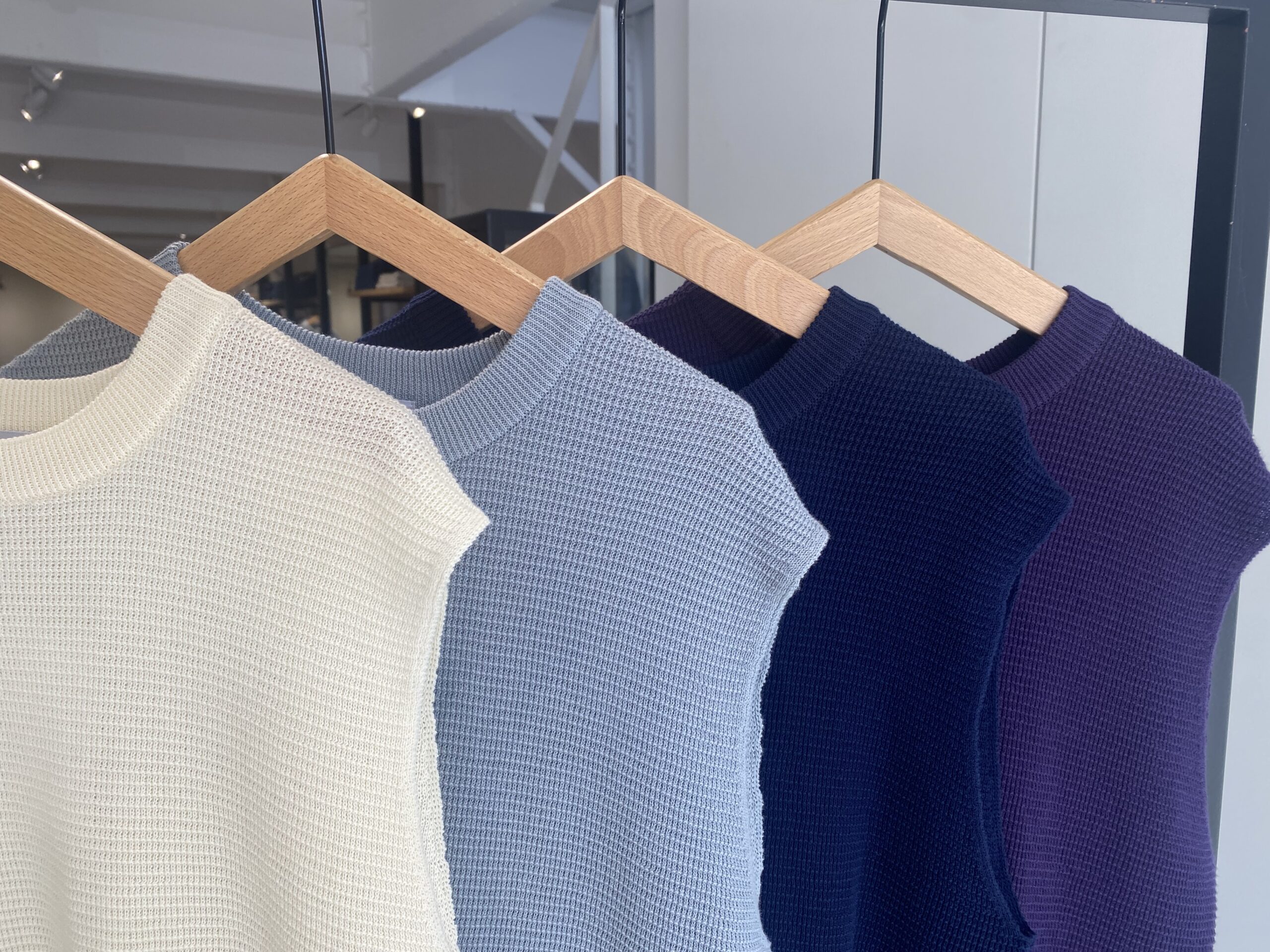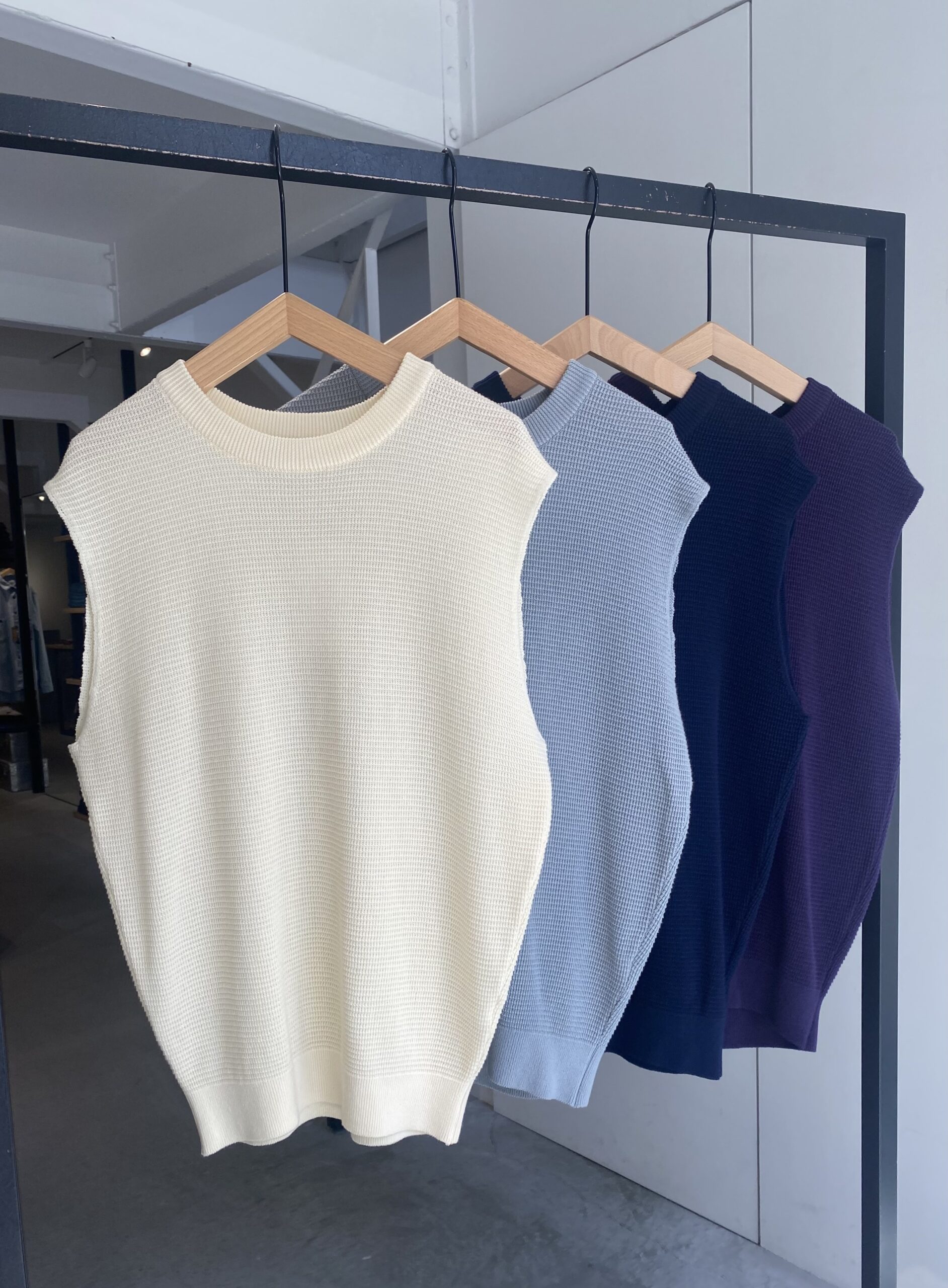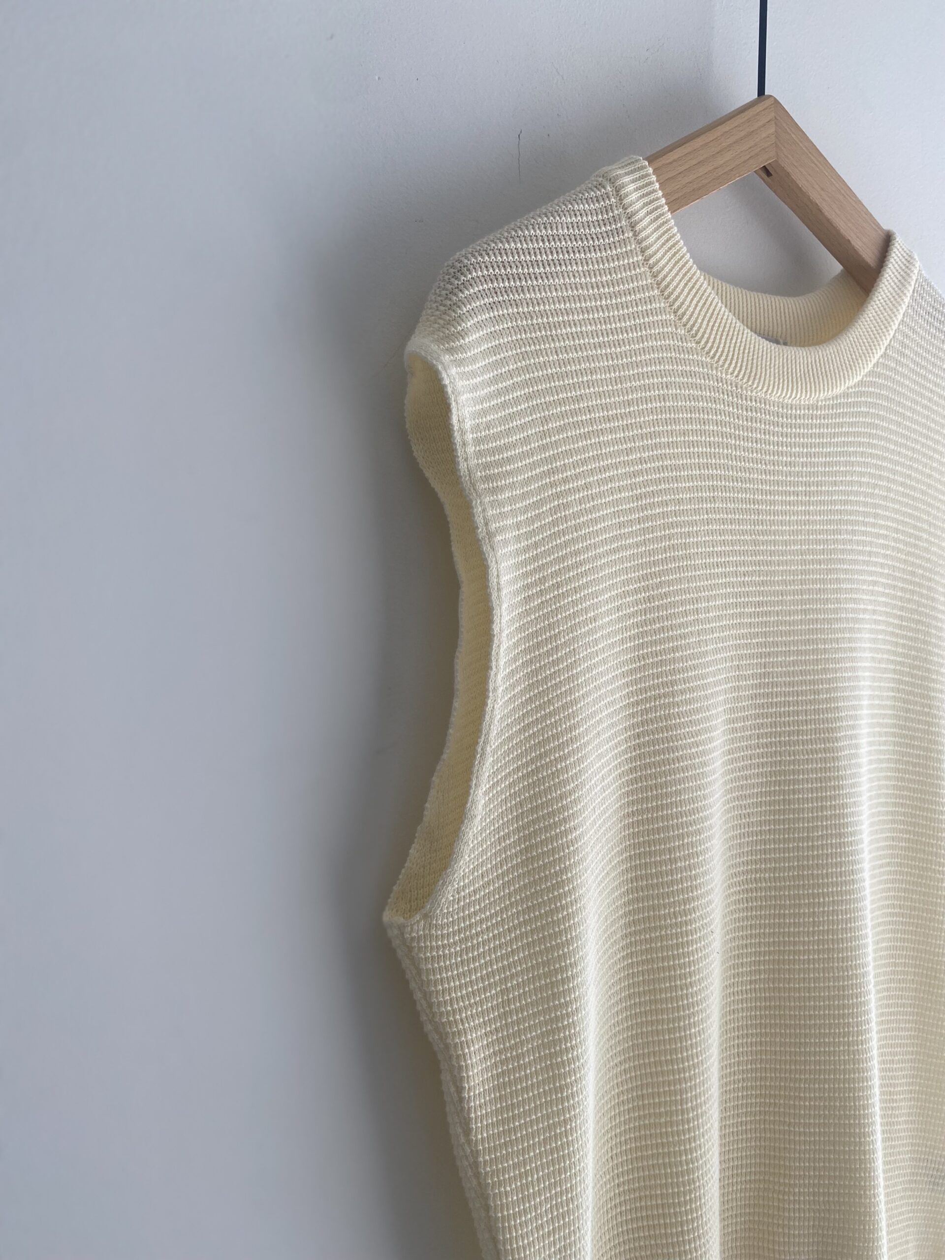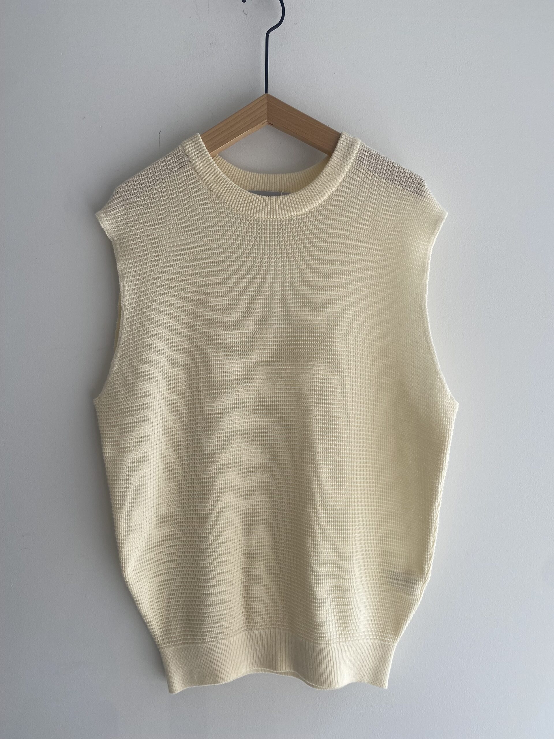 ワッフル素材のコットンニットベストです。